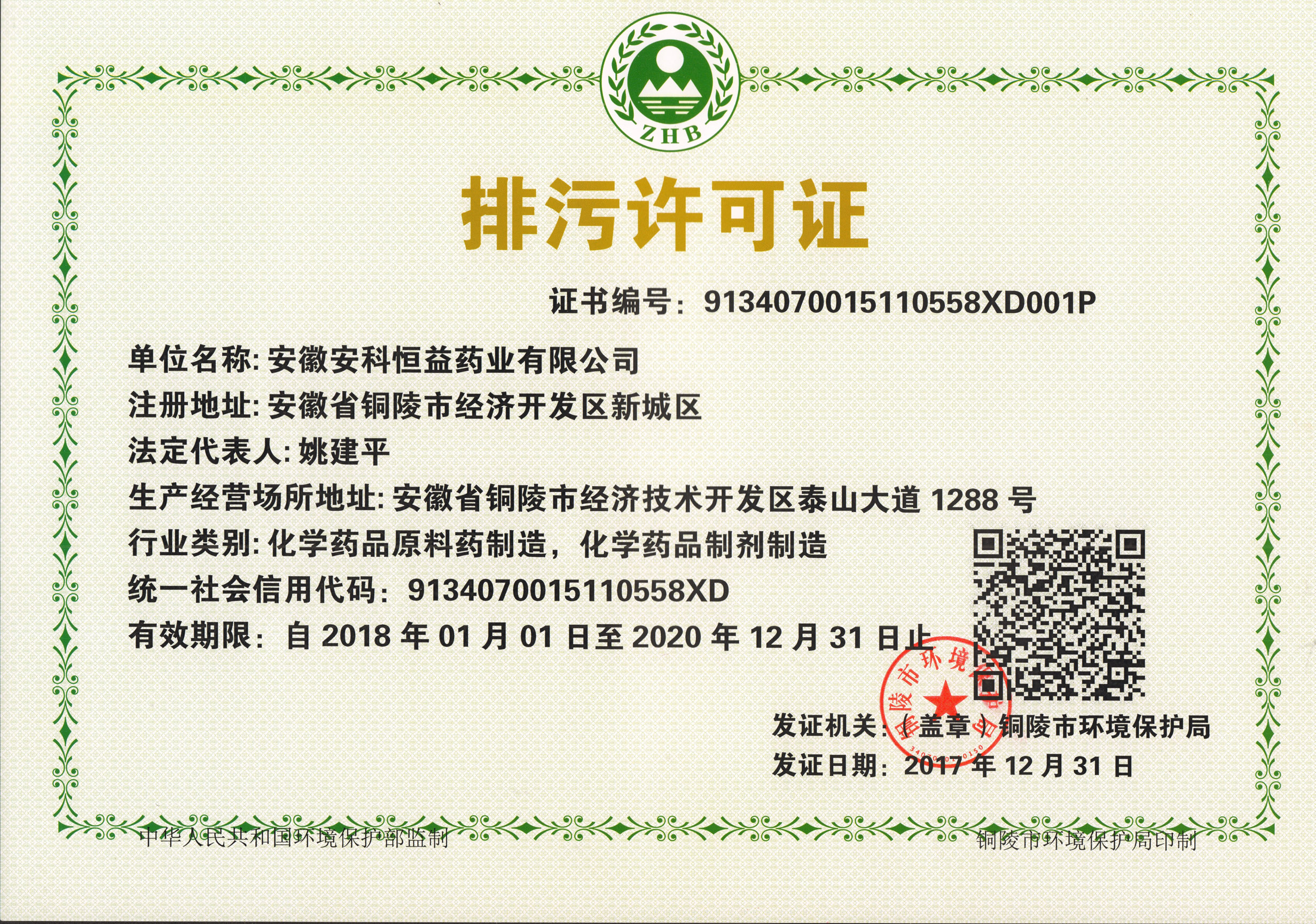 近日,我公司涉及化學(xué)原料藥制造及化學(xué)藥品制劑制造范圍內(nèi)取得銅陵市環(huán)保局頒發(fā)的 “排污許可證”,我公司排污許可證是區(qū)域內(nèi)首批取得的單位,相比原有的排污許可制,本次排污許可制有機(jī)銜接環(huán)評(píng)制度,整合總量控制制度,強(qiáng)化了對(duì)固定污染源實(shí)施全過(guò)程管理和多污染物的協(xié)同控制,實(shí)現(xiàn)對(duì)固定污染源的“一證式”管理。據(jù)悉本次的排污許可證載有獨(dú)有的二維碼信息,公眾只要掃一下二維碼,企業(yè)的地理位置、生產(chǎn)設(shè)施、排污狀況、執(zhí)行標(biāo)準(zhǔn)、監(jiān)測(cè)要求、排污去向等信息就會(huì)全部顯示出來(lái),可以非常方便地了解企業(yè)環(huán)保執(zhí)行情況。