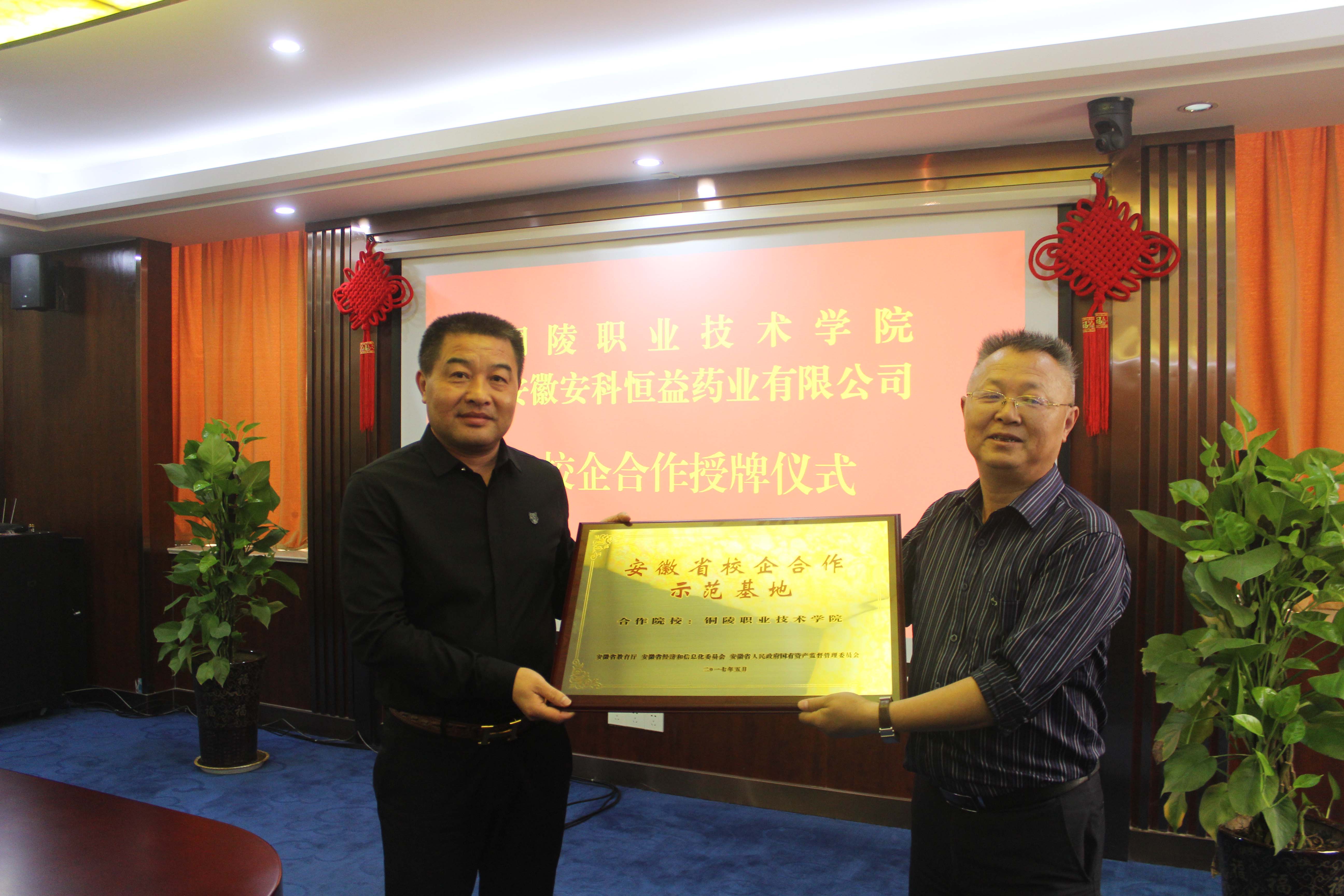 923日下午,我公司與銅陵職業技術學院“校企合作”授牌儀式在公司會議室舉行。這標志著公司與銅陵職業技術學院強強聯合、攜手共贏的新篇章。