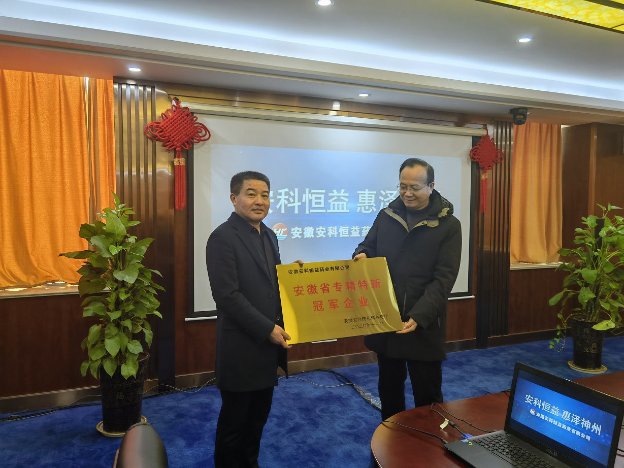 20201221日下午,銅陵市中小企業局局長朱永平率隊,就公司榮膺“安徽省專精特新冠軍企業進行授牌。