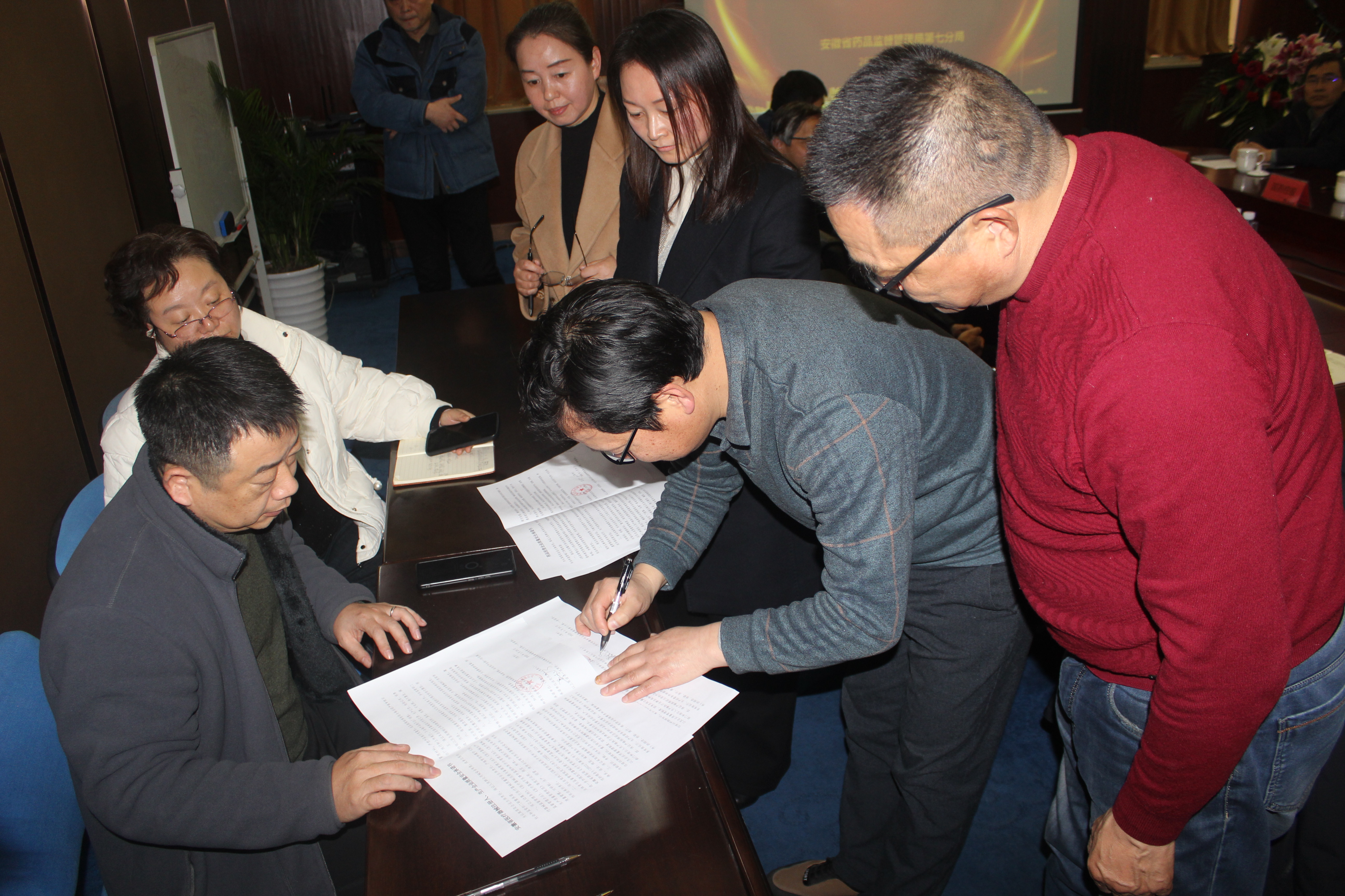 甘傳會(huì)科長(zhǎng)通報(bào)2024年質(zhì)量安全監(jiān)管工作狀況及2025年重點(diǎn)安排的監(jiān)管工作。會(huì)上省藥品監(jiān)管局第七分局與參會(huì)企業(yè)簽訂了《企業(yè)質(zhì)量安全承諾書(shū)》。
